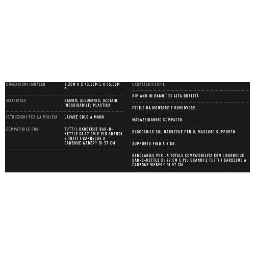 Divertiti a stare al barbecue con i tuoi ospiti mentre prepari tutti gli ingredienti. Affetta il pane e condisci l’insalata... il tavolino di bambù ti dà più spazio accanto al tuo barbecue a carbone e, con la gamba di metallo, sei sicuro di avere una superficie stabile su cui lavorare.