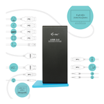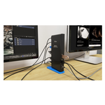 Docking station universale compatibile con tutti i marchi e modelli di notebook, viene fornita con un cavo USB 3.0 da 100 cm con adattatori integrati per USB-C e Thunderbolt 3.