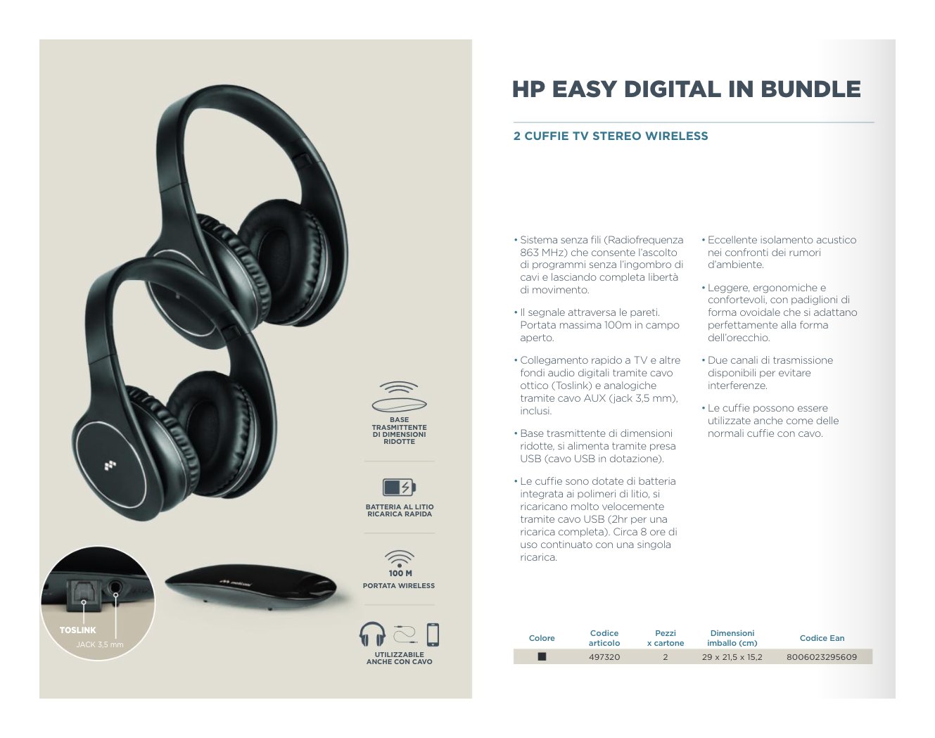 Il sistema senza fili (863 MHz) consente l’ascolto di programmi senza l’ingombro di cavi, lasciando completa libertà di movimento. Con una portata massima di 100m in campo aperto, queste cuffie wireless per tv offrono una connessione stabile e di alta qualità.