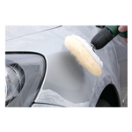 Cuffia di lucidatura, vera pelle d'agnello , con corda di serraggio per il fissaggio su platorelli di supporto d'uso commerciale, per lucidare legno, metallo, materia plastica, marmo, vetro, acrilico e vernice per auto.