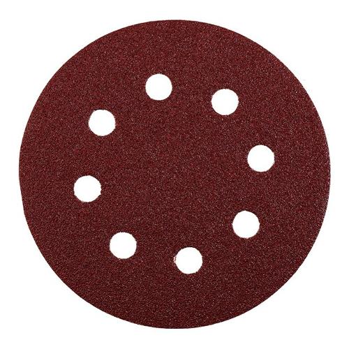 Dischi di carta abrasiva, ø 125 mm, legno & metallo, corindone pregiato, con riporto di ossido di alluminio, lega con resina sintetica, materiale di supporto rinforzato, con parte posteriore di velours, forati, per l’impiego su levigatrici rotoorbitali, per levigare metallo e legno, colore, vernice, stucco, pietra e materia plastica