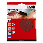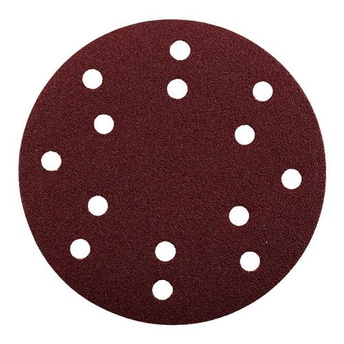 Dischi di carta abrasiva, ø 150 mm, legno & metallo, corindone pregiato, con riporto di ossido di alluminio, lega con resina sintetica, materiale di supporto rinforzato, con parte posteriore di velours, forati, per l’impiego su levigatrici rotoorbitali, per levigare metallo e legno, colore, vernice, stucco, pietra e materia plastica.