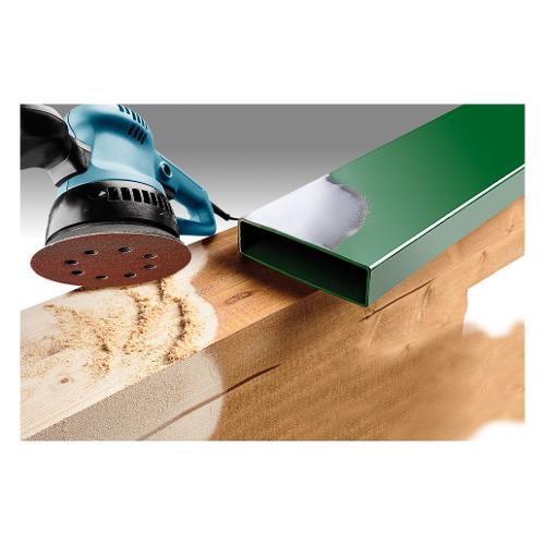 Dischi di carta abrasiva, ø 125 mm, legno & metallo, corindone pregiato, con riporto di ossido di alluminio, lega con resina sintetica, materiale di supporto rinforzato, con parte posteriore di velours, forati, per l’impiego su levigatrici rotoorbitali, per levigare metallo e legno, colore, vernice, stucco, pietra e materia plastica