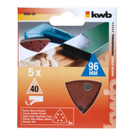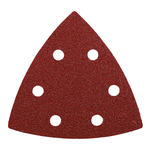 Triangoli abrasivi, 93 mm, legno & metallo, corindone pregiato, con riporto di ossido di alluminio, legato con resina completamente sintetica, materiale di supporto rinforzato, con parte posteriore di velours, forato per levigatrici a delta, per levigare metallo e legno, colore, vernice, stucco, pietra e materia plastica.