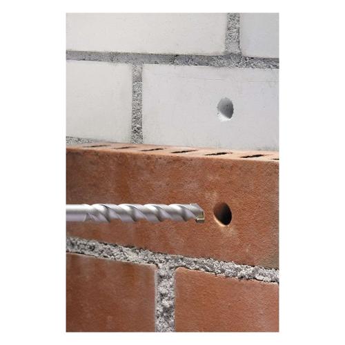 Punta per pietra, secondo iso 5468, con riporto in metallo duro, saldata ad alte temperature, per spirale senza asportazione di trucioli semicircolare per un asporto ottimale della farina di foratura, punta a prova di percussione per tutti i trapani a rotazione e percussione, superficie pallinata, colore grigio, per fori in muratura, pietra naturale e artificiale, arenaria calcarea.