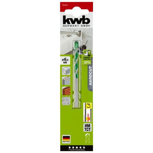 Conforme alla norma iso 5468, taglienti speciali in carburo metallico diamantato con un elevato contenuto di carburo di tungsteno e struttura omogenea a grana fine, angolo acuto 120°, fresa asimmetrica a spirale ideale per la rimozione della polvere di foratura, punta con alta pressione di contatto e un regime raccomandato di 800–1.000 giri/min senza percussione, adatto per macchine a batteria e per quelle dotate di cavo, colore verde, specialista per le pietre più dure come granito, gneiss, ardesia, basalto, cemento, ma risulta anche adatto per vetro, ceramica o tegole, ed altri materiali duri.
