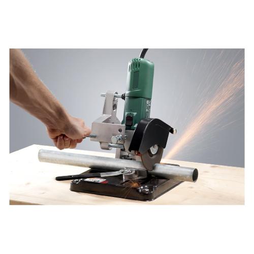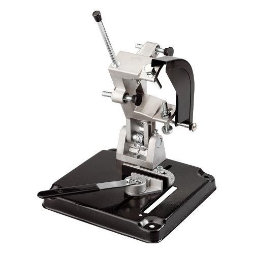 Supporto per smerigliatrice angolare, protezione laterale della mola da taglio, molla di ritorno, esecuzione pesante, con piastra di base stabile, dispositivo di serraggio per utensili, adatto per tutte le smerigliatrici angolari d'uso commerciale.