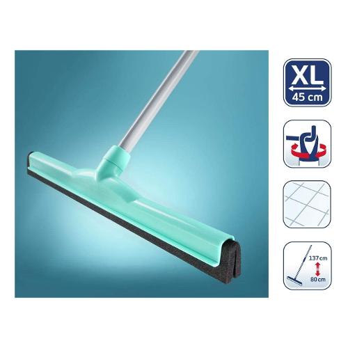 In terrazza, sulle scale, in cucina o in bagno: con il suo doppio profilo tergivetro in gomma sintetica, il tergipavimento leifheit classic telescope rimuove completamente l'acqua e lo sporco da piastrelle e pavimenti in pietra. Ciò che il primo profilo di gomma non può fare viene rimosso dal secondo. A ciò si aggiunge la sua impressionante larghezza di 45 cm. Ciò consente di rimuovere l'acqua da grandi aree con pochi colpi. L'impugnatura telescopica regolabile in lunghezza del tergipavimento leifheit garantisce un'altezza di lavoro ottimale e adatta alla schiena. Può essere regolato individualmente da 80 a 132 cm e si adatta così a ogni corporatura e ogni situazione di lavoro. Particolarmente pratico: il passante per appenderlo all'estremità della maniglia consente di riporre il tergipavimento sulla parete per risparmiare spazio.