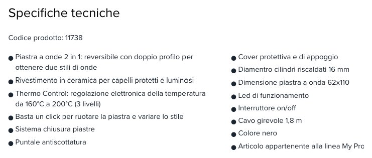 Scheda informativa del prodotto