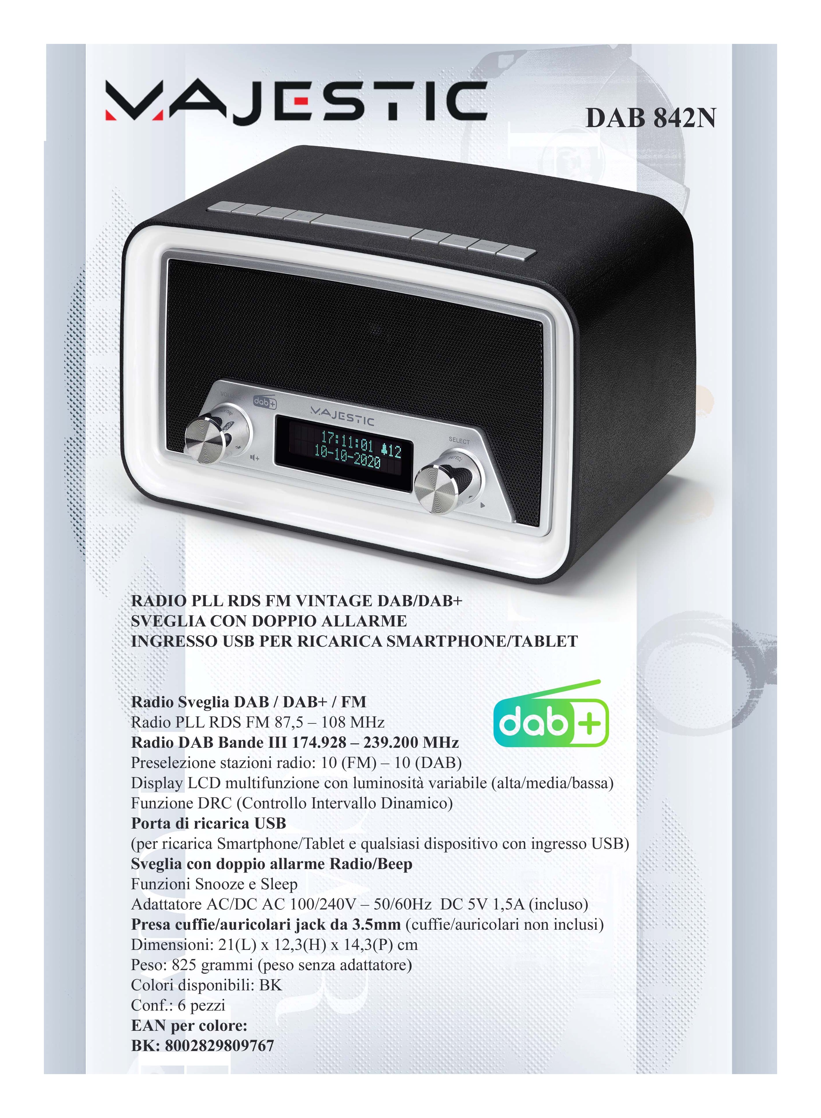 Radio VINTAGE Dab 842N Dab+ Black e White 109842
