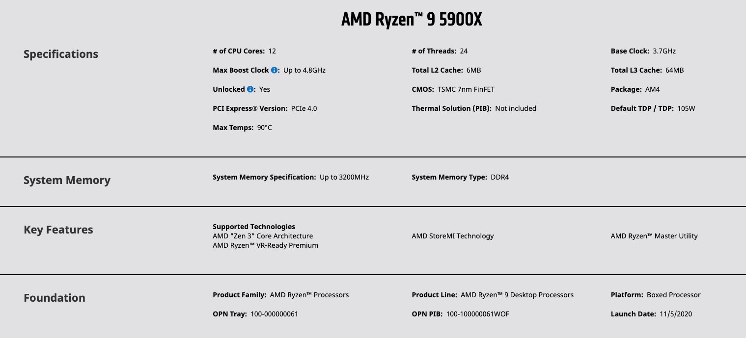 CPU AMD Ryzen 12 Core 3,7GHz RYZEN 9 5900X Desktop Processors 100 100000061WOF