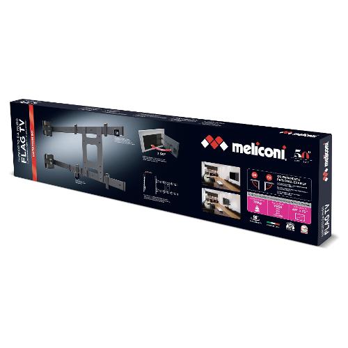 Questo è il nuovo FLAG TV Meliconi, l'unico ed esclusivo supporto da parete che fornisce un angolo di visione di 90 ° per tutti i televisori da 49 "a 75".