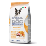 Special dog excellence mini adult con tacchino è un alimento completo per cani adulti di taglia piccola con riso, semi di lino e agrumi. Special dog excellence è la linea di prodotti pensata per offrire al tuo cane solo il meglio. Un’alimentazione completa formulata con ingredienti che supportano ogni giorno il benessere dei nostri amici a quattro zampe. Formulazioni con materie prime di qualità come i semi di lino, fonte di acidi grassi omega-3 possono rappresentare un valido supporto per il benessere della cute e del pelo e gli agrumi, fonte di vitamina c, per supportare la funzione fisiologica del sistema immunitario. Senza coloranti e conservanti artificiali aggiunti.