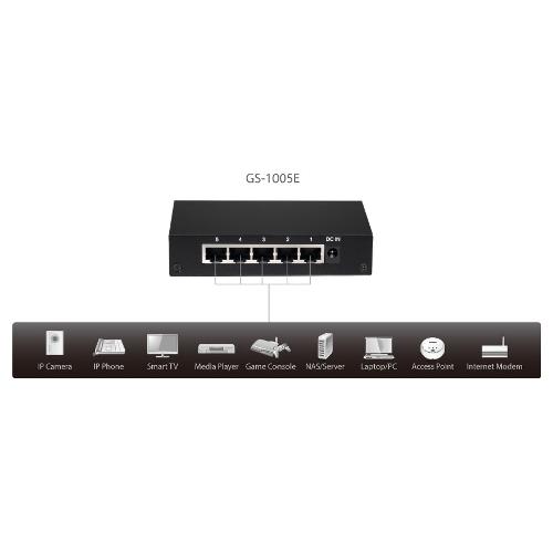 Switch di rete 5 porte Desktop Black GS 1005E Gigabit (1000Base-TX)