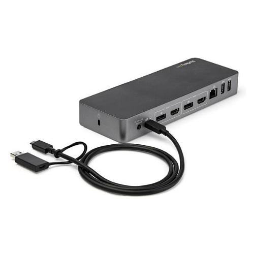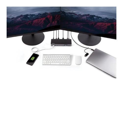 Questa docking station universale certificata per computer laptop USB-C e USB-A consente di passare dallo standard USB-A (USB 3.0) al nuovo standard USB-C. La docking station USB-C offre funzionalità Power Delivery 3.0 a 100 W, supporto per due monitor HDMI e/o DisplayPort, ricarica veloce e porte per periferiche sia USB-C che USB-A.