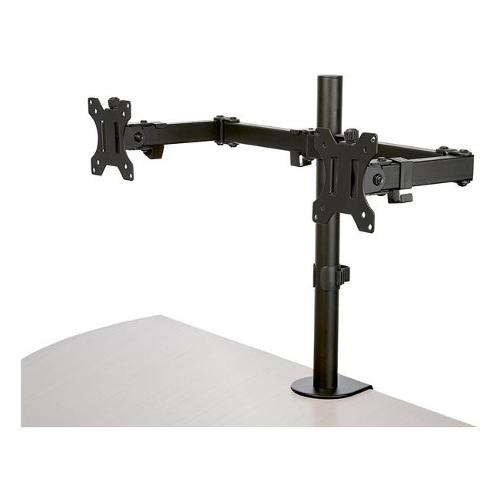 Meno ingombro e più comfort durante il lavoro grazie a questa staffa funzionale per il montaggio di due monitor su scrivania, che rappresenta una soluzione versatile ed economica per un'area di lavoro ergonomica. Il design a barre trasversali a due giunti consente un ampio raggio di movimento con in più la possibilità di regolare inclinazione, orientamento orizzontale, rotazione e altezza.