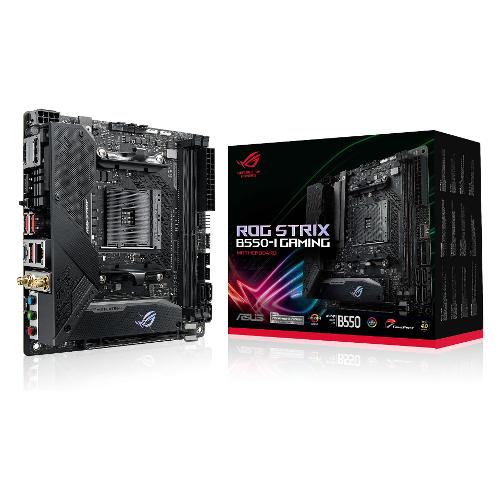 AMD B550 Gaming Mini-ITX motherboard with PCIe® 4.0, teamed power stages, Intel® 2.5 Gb Ethernet, WiFi 6 (802.11ax), dual M.2 with heatsink, SATA 6 Gbps, USB 3.2 Gen 2