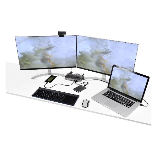 Questa docking station universale per computer laptop USB-C e USB-A consente di passare dallo standard USB-A (USB 3.0) al nuovo standard USB-C. La docking station USB 3.2 Gen 2 (10 Gbps) Type-C è dotata di due monitor HDMI e/o DisplayPort, ricarica rapida, sei porte per periferiche downstream USB Type-A e jack audio per cuffie.