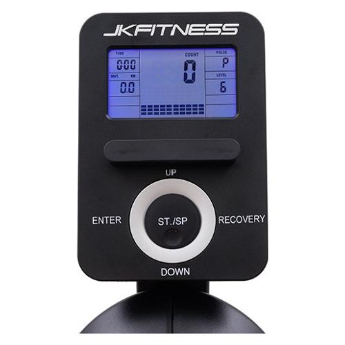 Il JK 5077 è un vogatore elettromagnetico di fascia medio-alta nel mondo JK home fitness equipaggiato con una massa volanica da 6 kg bilanciata, che permette una vogata molto fluida e senza strappi a qualsiasi resistenza. La regolazione dello sforzo avviene mediante un servo motore comandato dalla console con ben 16 livelli di resistenza. Il sedile ergonomico del JK 5077 garantisce una comoda postura durante l’esercizio grazie anche ai pedali punta piedi (basculanti) con cinghietto ferma scarpa che permettono di mantenere sempre l’appoggio anche nelle fasi più intense dell’esercizio. La console è dotata di uno schermo multi-display retroilluminato blu con 5 finestre più una matrice grafica 10 x 8 pxl (per visualizzare il profilo dei programmi); i dati forniti dal display sono: tempo, n° vogate, vogate per minuto, distanza, velocità, calorie, Watt, frequenza cardiaca, livello resistenza, n° programma, diagramma programma. Il vogatore JK 5077 è dotato di un sensore integrato per la ricezione dalla fascia cardio per rilevare la frequenza cardiaca dell’utilizzatore durante le sessioni di allenamento più intense; la fascia cardio toracica è un optional da ordinare a parte. Il vogatore JK 5077 è dotato di una serie di programmi per rendere gli allenamenti in sella più motivanti; 1 programma manuale gestito direttamente dall’utilizzatore, 10 programmi preimpostati con profili differenti delle resistenze applicate per ogni segmento, 4 programmi HRC (55% 75% 95% tag user BPM), 1 programma a Watt costanti, 5 programmi personalizzabili dall’utilizzatore, 1 recovery test (sul recupero dell’utilizzatore post sforzo). Il robusto telaio dl vogatore JK 5077 poggia su stabilizzatori di ampie dimensioni con piedini in gomma autolivellanti che permette di sopportare un peso max utilizzatore di 100 kg; nella parte anteriore sono posizionate 2 rotelle di trasporto, che facilitano l’utilizzatore negli spostamenti da un locale all’altro. Il vogatore JK 5077 occupa solo 87 x 55 cm H 162 cm se posto in verticale; in pratica perfetto per chi vuole un’ottima prestazione ma con il minimo ingombro. La soluzione ideale per chi vuole avere un vogatore in casa. Un perfetto alleato per chi è alla ricerca di un vogatore per dimagrire o che vuole eseguire un allenamento cardio e godere dei benefici dell’allenamento con i “remi”. Ma non solo…l’allenamento con vogatore permette anche la tonificazione dei muscoli coinvolti offrendo così un workout completo.