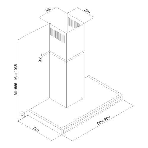 Cappa parete (90x50x103cm) Drop Control Inox e Nero 3173 9 733 03