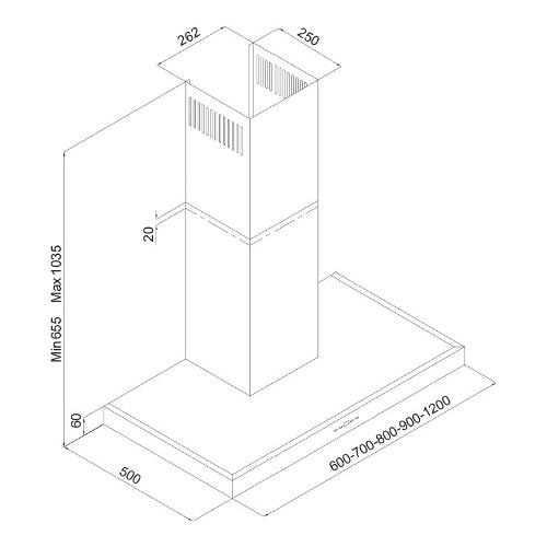 Cappa parete (60x50x103cm) Nero 3170 6 733 04