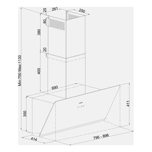 Cappa parete (89,6x39,5x113cm) Soho Drop Control Nero 3457 9 733 03