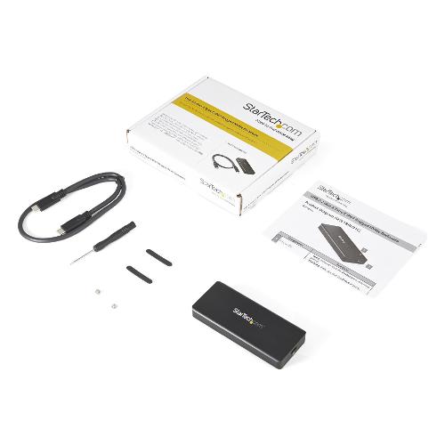 Questo robusto box esterno per unità SSD PCIe NVMe M.2 fornisce una soluzione di archiviazione ad alte prestazioni estremamente portatile per i dispositivi con tecnologia USB-C o Thunderbolt 3.