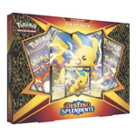 La collezione Pikachu-V dell'espandione Destino Splendente del GCC Pokémon contiene: - 1 carta promozionale olografica di Pikachu-V; - 1 carta olografica gigante di Pikachu-V; - 4 buste dell'espansione Destino Splendente; - 1 carta codice per il Gioco di Carte ollezionabili Pokémon Online