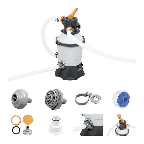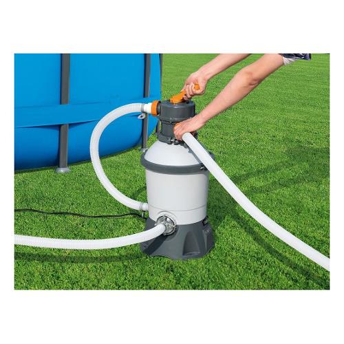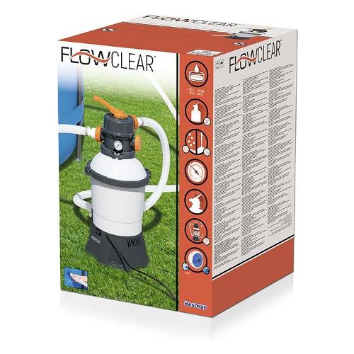 La pompa di filtraggio a sabbia è la soluzione ideale per la tua piscina fuori terra Bestway®. I filtri a sabbia, infatti, permettono di ottimizzare i costi e offrono un risultato di qualità. Con una pratica valvola a 6 funzioni per gestire le funzioni del filtro, la pompa di filtraggio Flowclear è dotata di un programmare intuitivo che indica i cicli di funzionamento automatico e un manometro di facile leggibilità. Valvola a 6 funzioni: filtrazione, contro lavaggio, risciacquo, ricircolo, svuotamento, stop.Il pre-filtro a cestello offre una barriera supplementare che blocca detriti come foglie e sporcizia, inoltre allunga la vita della pompa. Il prodotto è già assemblato, così devi solo collegarlo alla tua piscina senza preoccuparti di nulla.