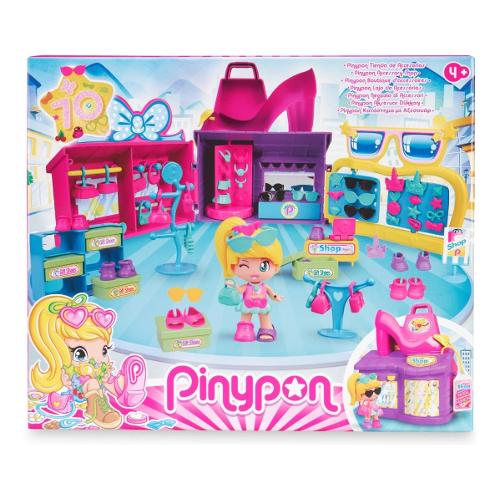 Il nuovo Pinypon Negozio di accessori è il posto più divertente per giocare con più di 50 accessori: occhiali da sole, capelli, spille, gonne, borse e scarpe e tanto altro.Sarà possibile riporre tutti gli accessori nelle diverse scatole,negli scomparti o sul display rotante. Include anche una piattaforma girevole dove Pinypon potrà ammirarsi in uno specchio vero. Richiudibile, con una scarpa cool nella parte superiore e maniglia per poterlo portare ovunque.