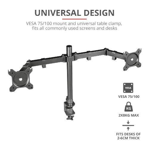 Supporto monitor TV scrivania ( 16 Kg ) VESA 100 x 100 GXT 1120 Mara Dual Monitor Arm Black 23941