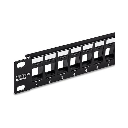 Il pannello patch Keystone vuoto 1U a 24 porte di TRENDnet, modello TC-KP24, è progettato per l'uso con i jack keystone Cat6 di TRENDnet (TC-K25C6 e TC-K50C6). Se usati insieme, creano una soluzione di pannello patch adatta per applicazioni di rete Ethernet in rame gigabit e 10G.
