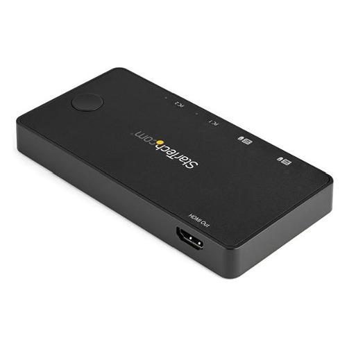 Questo dispositivo KVM USB-C a 2 porte consente di passare facilmente tra due computer desktop o laptop USB Type-C o Thunderbolt 3 utilizzando una singola tastiera, un mouse e monitor HDMI.