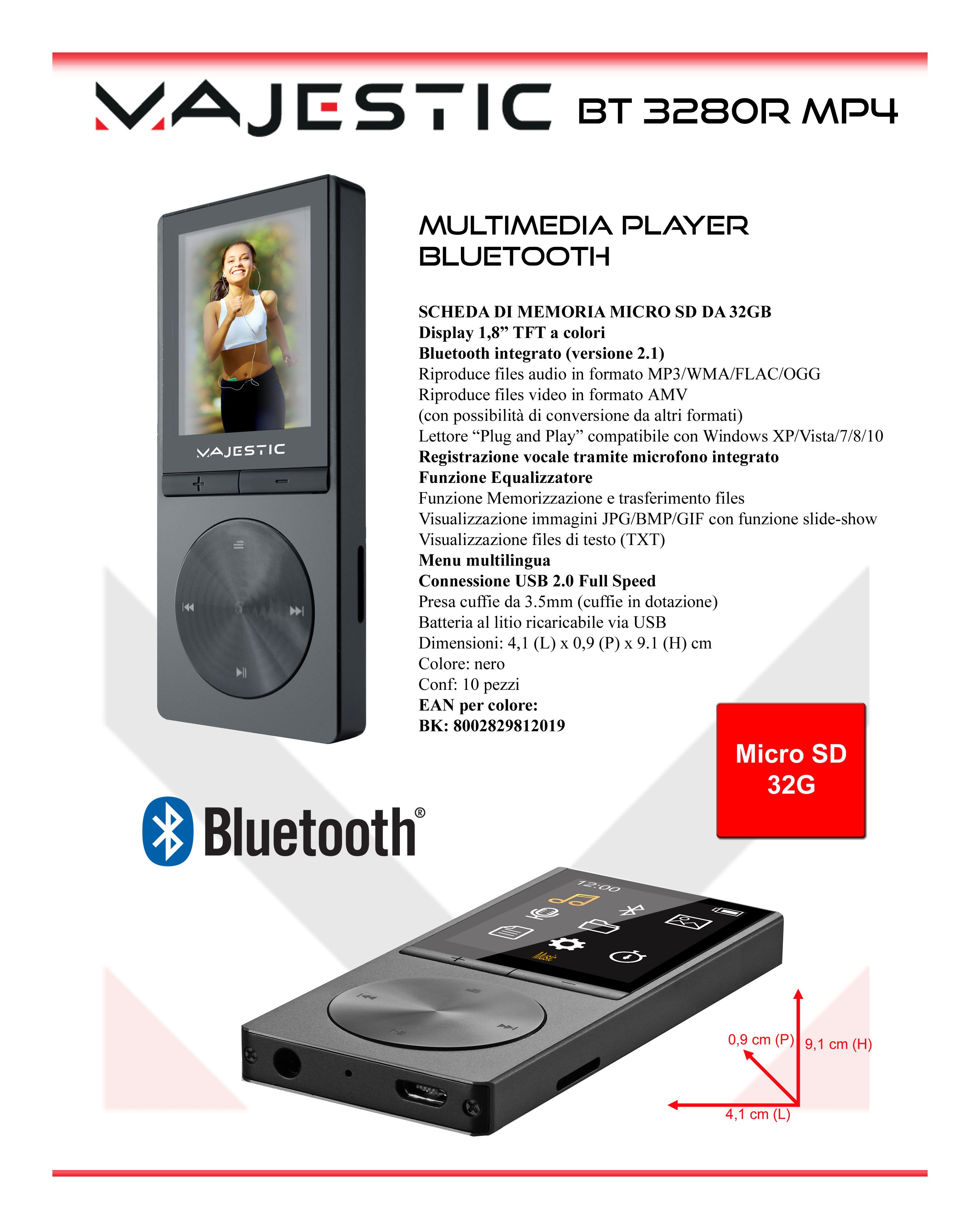 Lettore multimediale ( 32GB ) Bluetooth BT 3280R MP4 Black 123280 BK