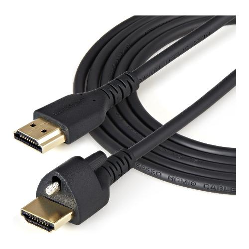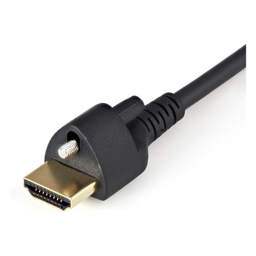 Il cavo presenta un connettore HDMI con fermo a vite superiore ad alta ritenzione dotato di uno slot che si fissa saldamente a un'ampia gamma di porte HDMI femmina a vite superiore, evitando la perdita di segnale o le disconnessioni accidentali.