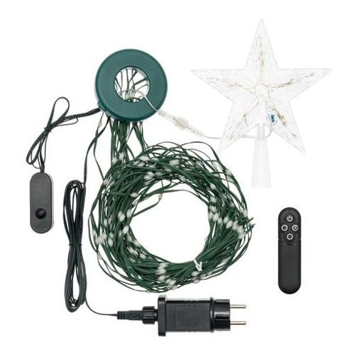 Tenda Mantello Verde H195cm + Puntale Stella per decorare alberi Natale H210-240cm, 440 GOCCE di Luce PIXEL LED HB 360° MULTICOLOR RGB ø4mm, Led High Brightness alta luminosità a 360° , Controller e Telecomando Multifunzione, Effetti Pixel Led con led controllati singolarmente, Puntale Stella Bianco Caldo incluso, Trasformatore di Sicurezza, IP44 uso Esterno e Interno, Cavo Soft Verde, Cavo di Alim. 5m, Dimensioni 5m+22 Stringhe H195cm