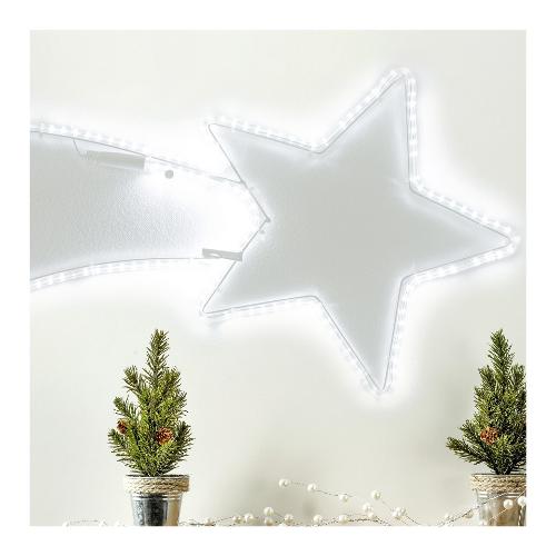 Stella Cometa 65cm SMD Strip 196 LED BIANCO (2m), gioco di luce automatico FlashLED Diamond (182 luce fissa + 14 lampeggio veloce), Telaio metallo verniciato bianco, Trasformatore Bassa Tensione di Sicurezza, IP44 uso Esterno e Interno, Cavo di Alimentazione Trasparente 4m, Dimensioni 4m+65x28cm