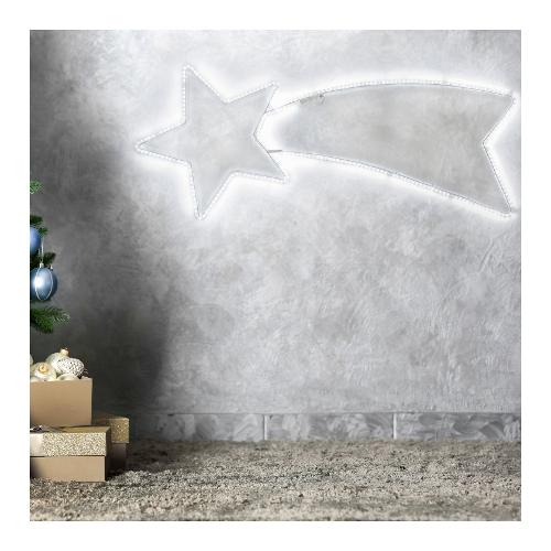 Stella Cometa 100cm SMD Strip 294 LED BIANCO (3m), gioco di luce automatico FlashLED Diamond (273 luce fissa + 21 lampeggio veloce), Telaio metallo verniciato bianco, Trasformatore Bassa Tensione di Sicurezza, IP44 uso Esterno e Interno, Cavo di Alimentazione Trasparente 4m, Dimensioni 4m+100x40cm