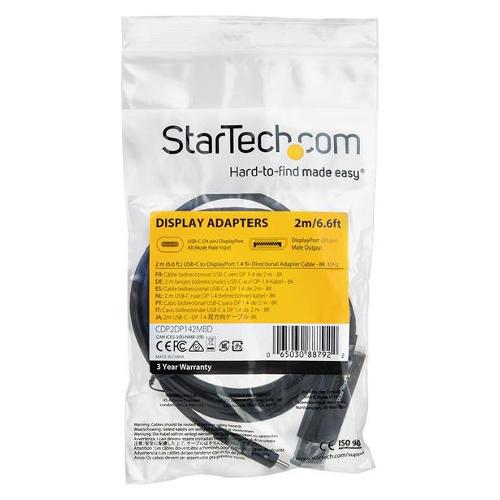 Questo cavo USB-C™ a DisplayPort™ 1.4 consente di collegare un dispositivo USB Type-C™ (o Thunderbolt 3™) a un display DisplayPort oppure un dispositivo DP a un display USB-C con un solo cavo.