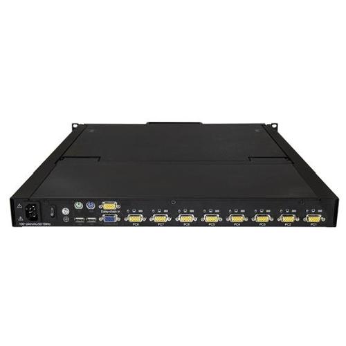 Questa console KVM con montaggio a rack offre un controllo completo su mouse, monitor e tastiera di otto computer. Si tratta di una soluzione completa ed efficiente in termini di spazio, in quanto può essere installata in uno spazio rack da 1U.