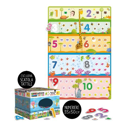 Il gioco del numeriere tattile consiste nel mettere dentro la scatola montessori i numeri sagomati. Le letterine sono in questo modo, nascoste alla vista per cui il bambino, mettendo la manina nell’apposito foro, cerca i numeri nella scatola usando il tatto. L’obiettivo è ricostruire il puzzle mettendo ciascun numero al giusto posto. Questo gioco è in linea con il metodo montessori perché stimola l’esercizio della memoria tattile e, secondo la pedagogista, la manipolazione dei materiali è un’esperienza concreta che rende l’apprendimento più efficace e l’esperienza è fondamentale per il bambino per costruire la sua intelligenza.