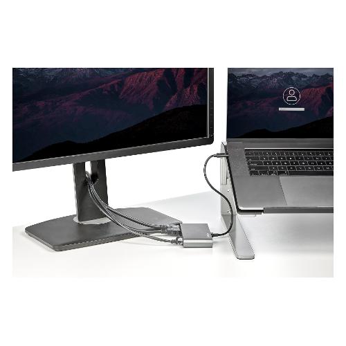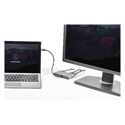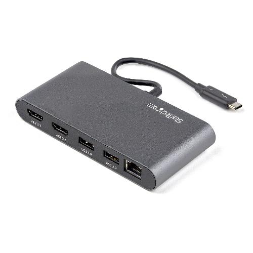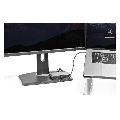 Dotata di certificazione Thunderbolt™ 3, questa mini docking station compatta offre collegamenti essenziali per la produttività. Alimentata tramite bus, consente il collegamento a due display HDMI 4K, a una porta Gigabit Ethernet e a due porte USB-A (USB 3.2/2.0), nonché una configurazione flessibile grazie al cavo Thunderbolt 3 integrato di ben 28 cm di lunghezza.