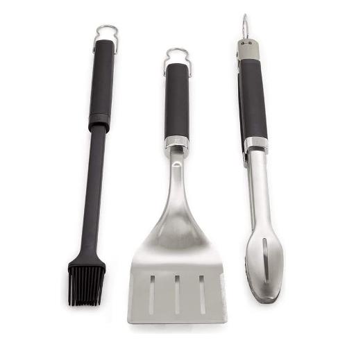 Gira gli hamburger e le verdure, e glassa le costolette per tanto sapore in più. La paletta con bordo smussato su 3 lati, la pinza con blocco automatico e il grande pennello per condimenti in silicone del Kit Precision sono elementi essenziali per grigliare tutti i giorni. Tutti gli utensili sono dotati di un'impugnatura morbida per una presa comoda e sicura.