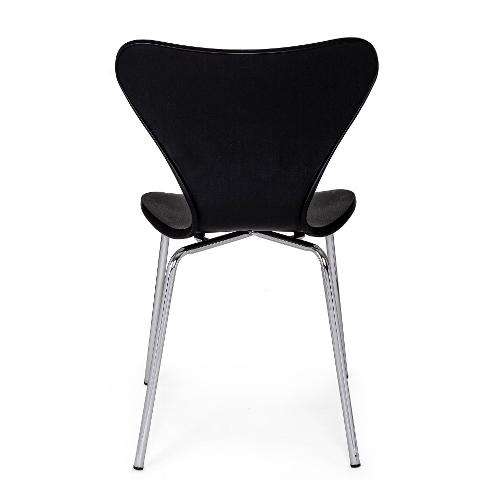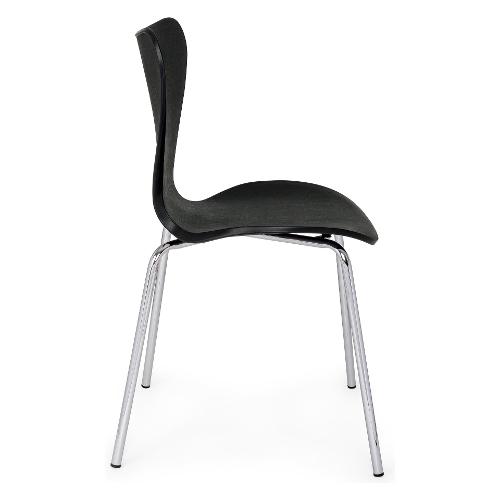 Gambe in acciaio cromato. Seduta e schienale in plastica (pp)