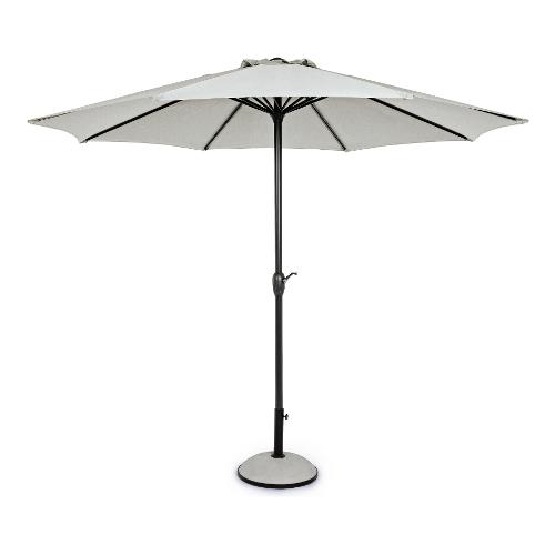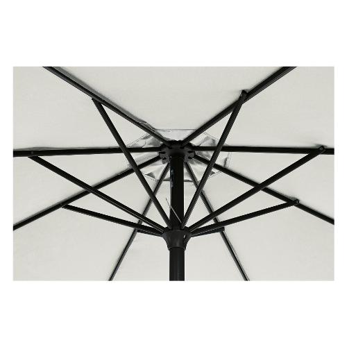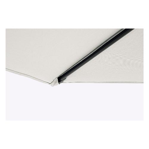 Struttura verniciata a polvere (Poliestere). Palo in alluminio Ø 46/48 mm. 8 stecche in acciaio trattato per esterno tramite fosfatazione 12x18 mm. Telo in Poliestere color naturale 180 gr/mq con camino antivento. Base non inclusa