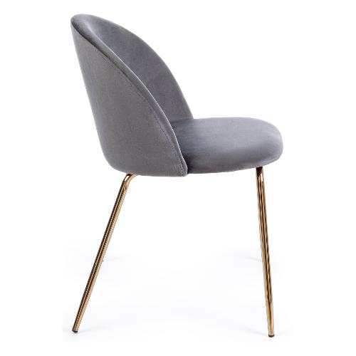 Gambe in tubolare di acciaio con cromatura dorata. Schienale e seduta imbottiti in schiuma poliuretanica e rivestiti in velluto (100% Poliestere)