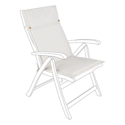 Poliestere 180 gr/mq. Idrorepellente sfoderabile con cerniera lampo a scomparsa. Spessore seduta: 3 cm