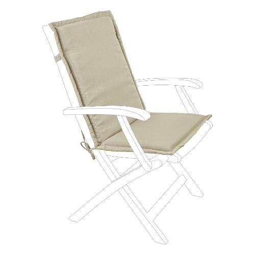 Poliestere 230 gr/mq. Idrorepellente sfoderabile con cerniera lampo a scomparsa. Spessore seduta: 3 cm