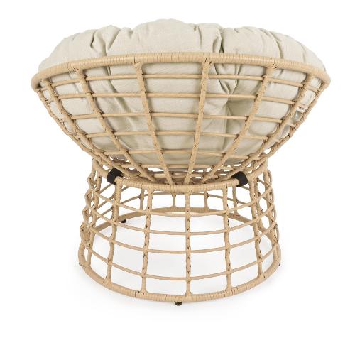 Struttura in acciaio trattata per l'esterno tramite fosfatazione e verniciata a polvere (poliestere). Intreccio in fibra sintetica. Cuscini non sfoderabili in tessuto poliestere. Portata massima: 130 kg