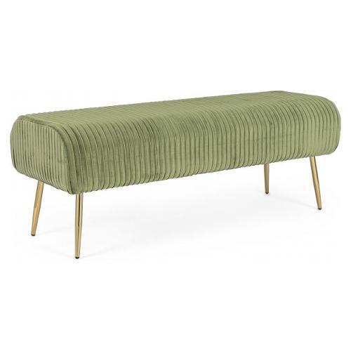 Struttura in MDF e compensato. Gambe in acciaio cromato color oro. Rivestimento in Poliestere effetto velluto a coste. Densità imbottitura 30kg/m3